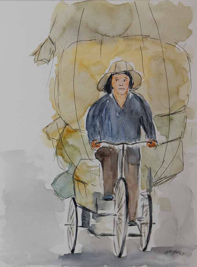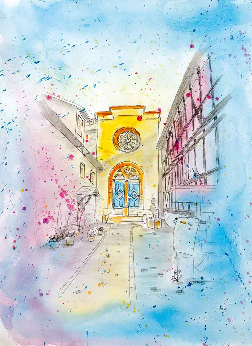 Seitdem entwickelt sie ihre Technik der aquarellierten Zeichnung und schätzt inzwischen die Leichtigkeit und helle Leuchtkraft dieser Farben, die sie inzwischen immer dabei hat, wenn sie unterwegs ist.