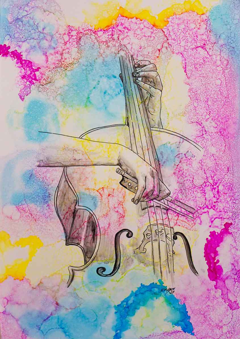 Sei es auf Papier oder auf Leinwand mischt sie dafür Alcohol-Ink mit anderen Techniken und gewinnt daraus wieder eine ganz eigene, neue Darstellungsform für ihre Motive.