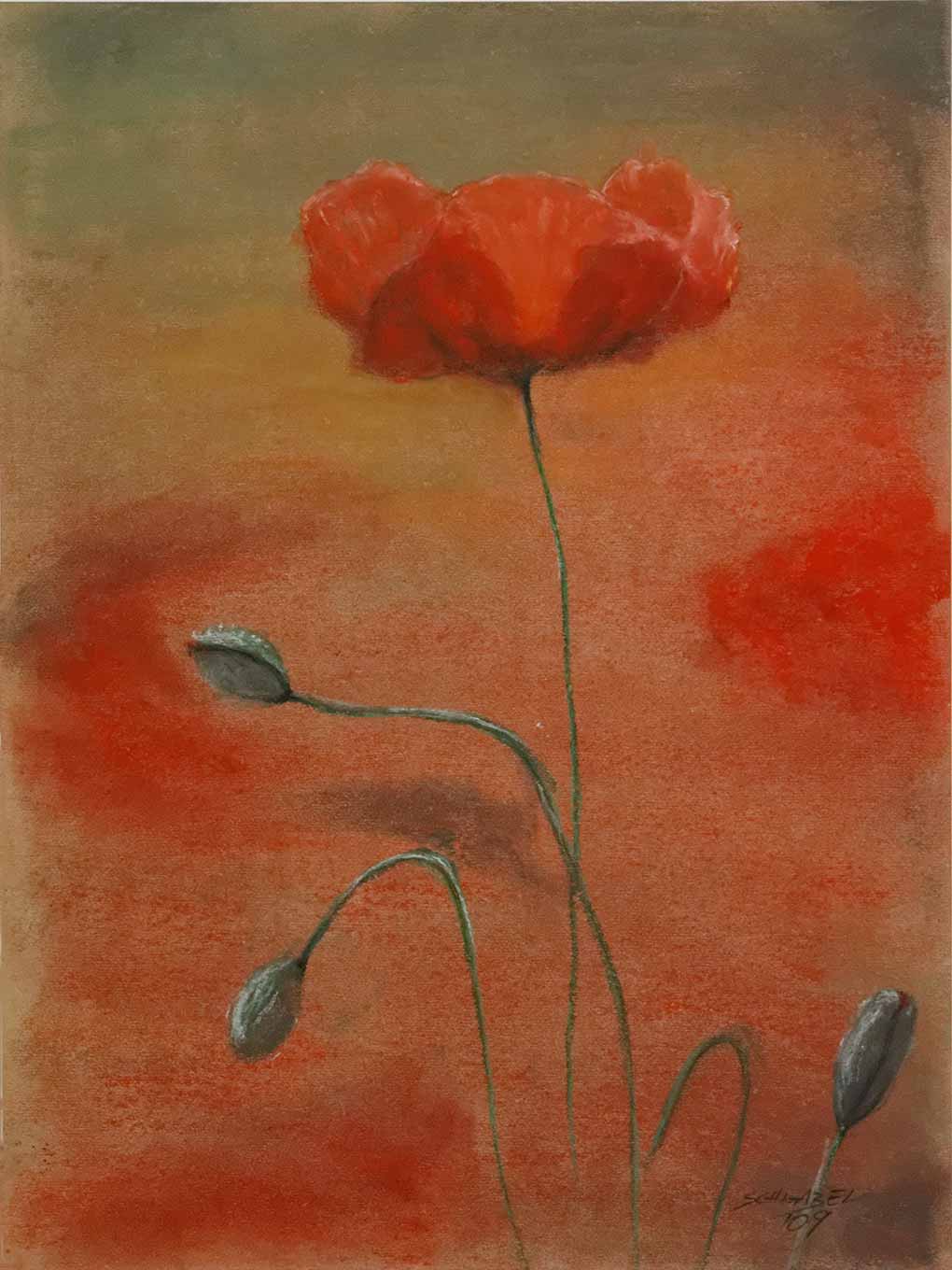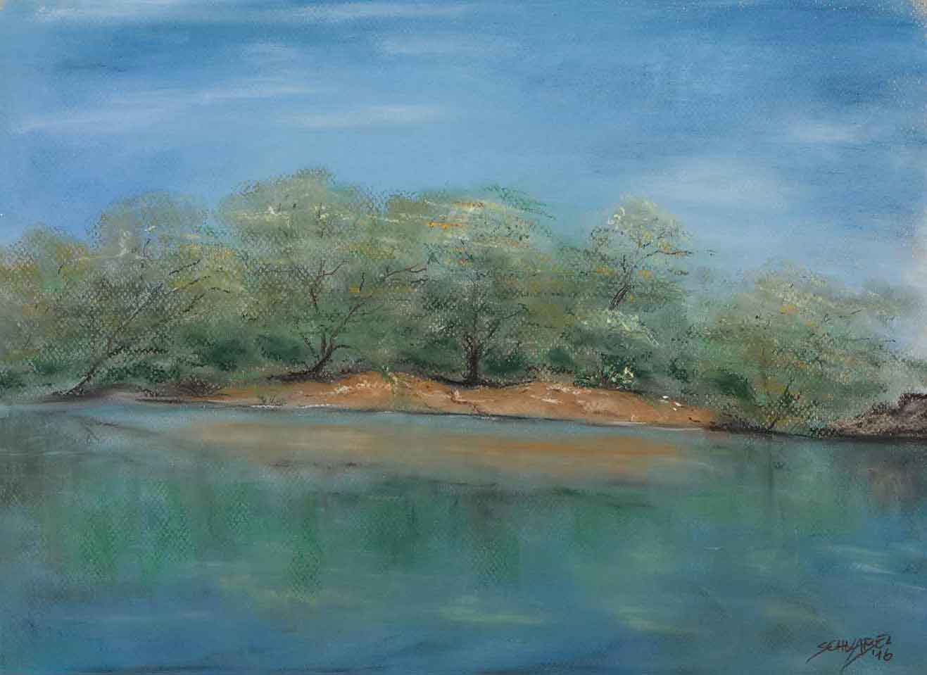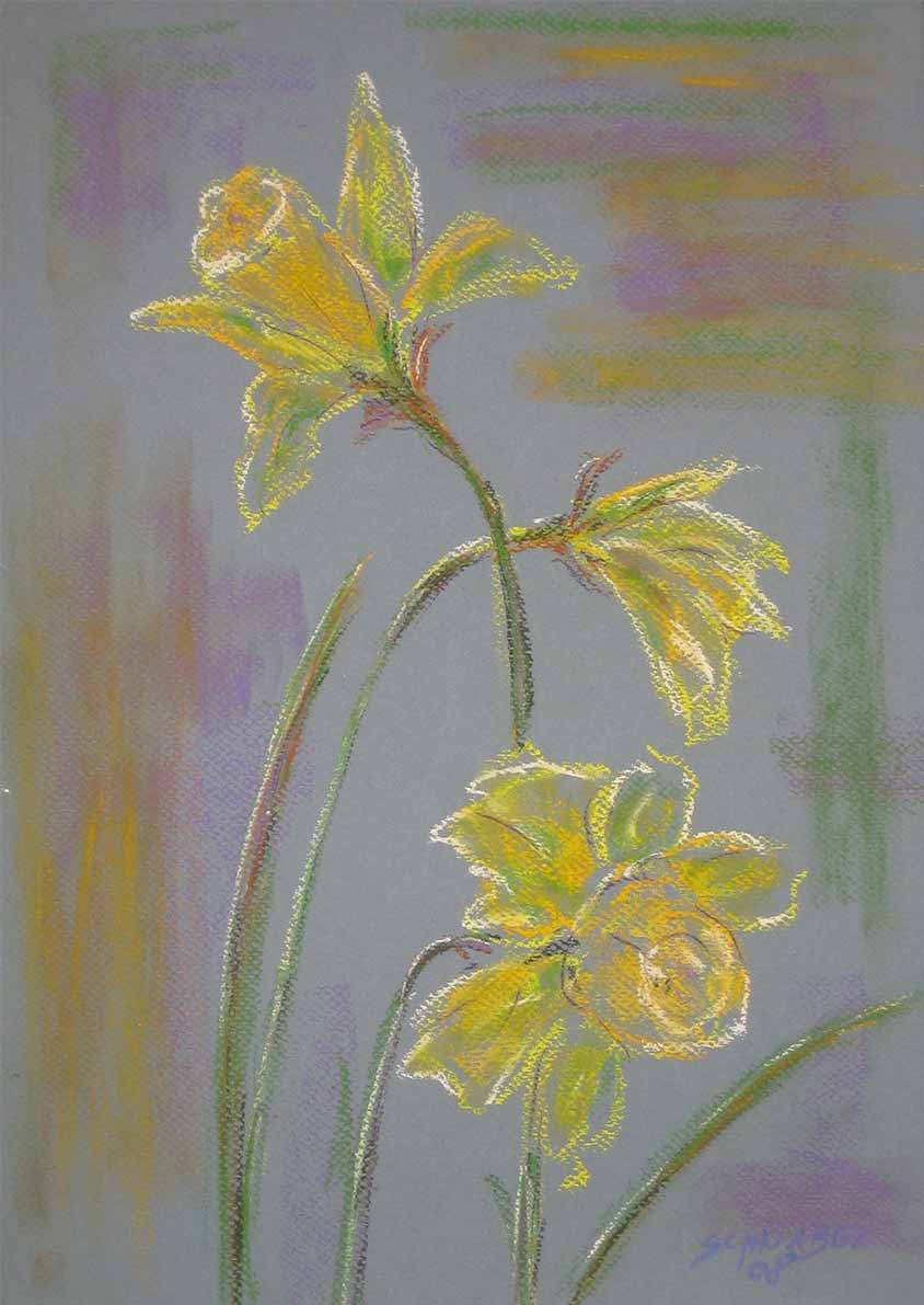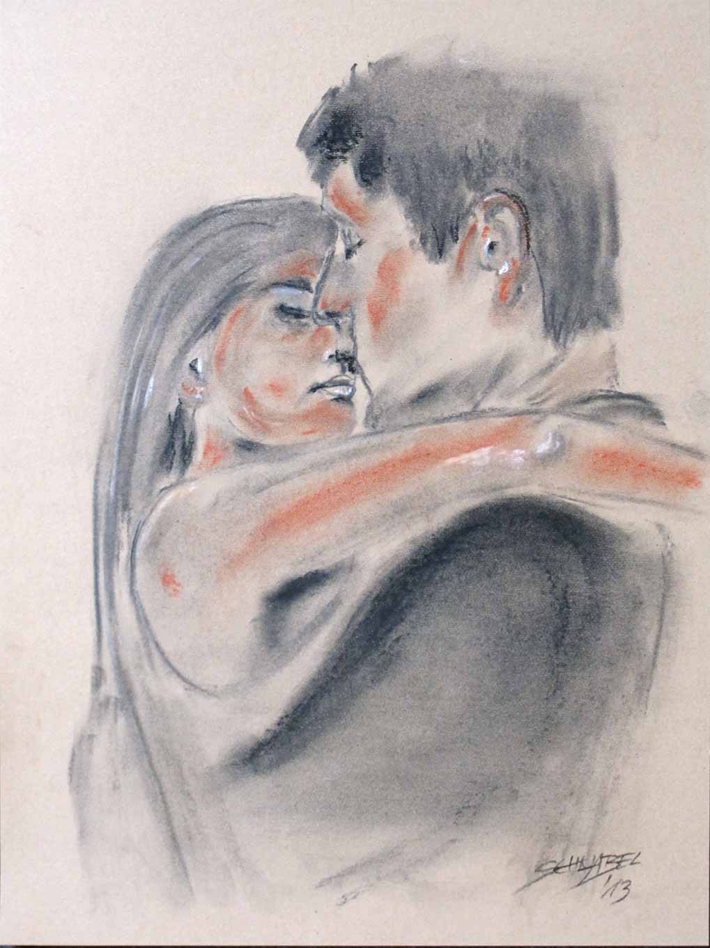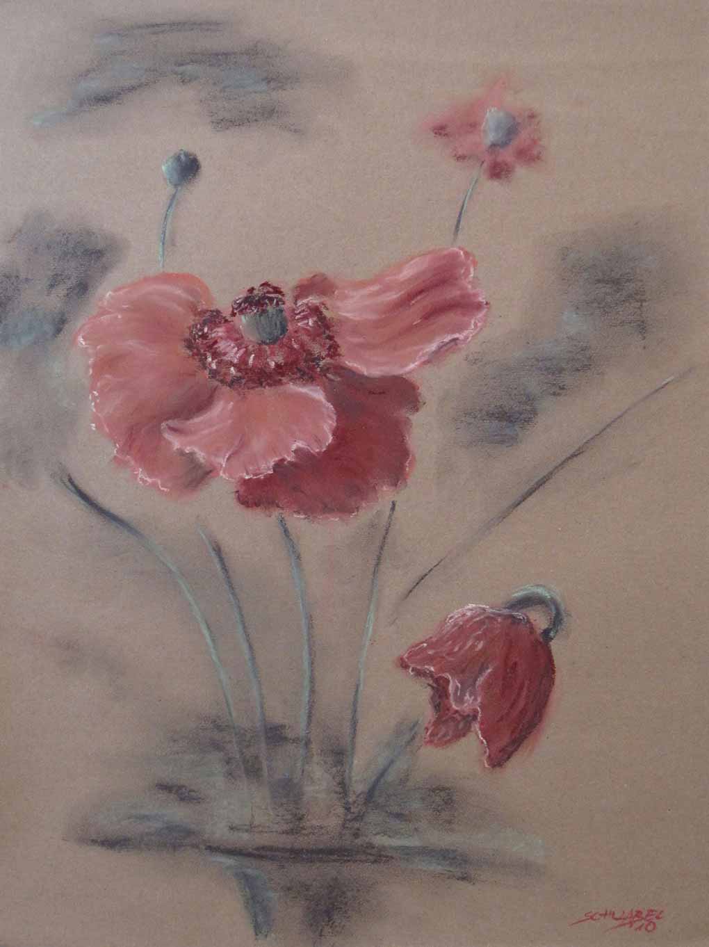 Eines der Hauptmedien von Susanne Schnabel sind die Pastellkreiden, wobei sie die haptische Komponente besonders anspricht; sie scheint die Farben mit den Fingern auf dem Papier quasi zu modellieren.