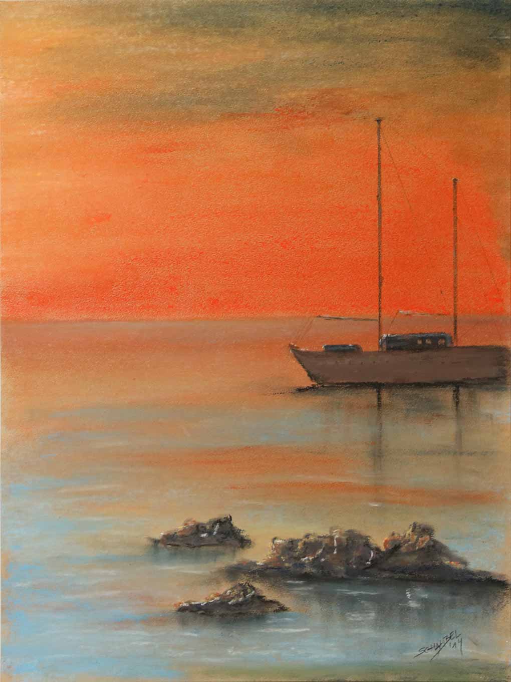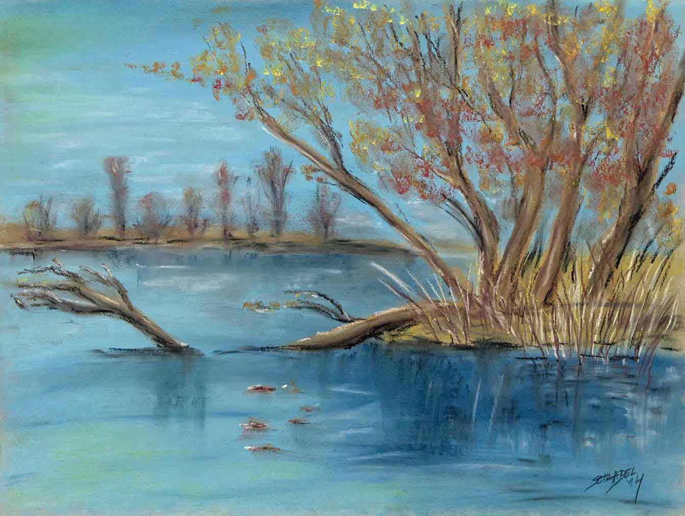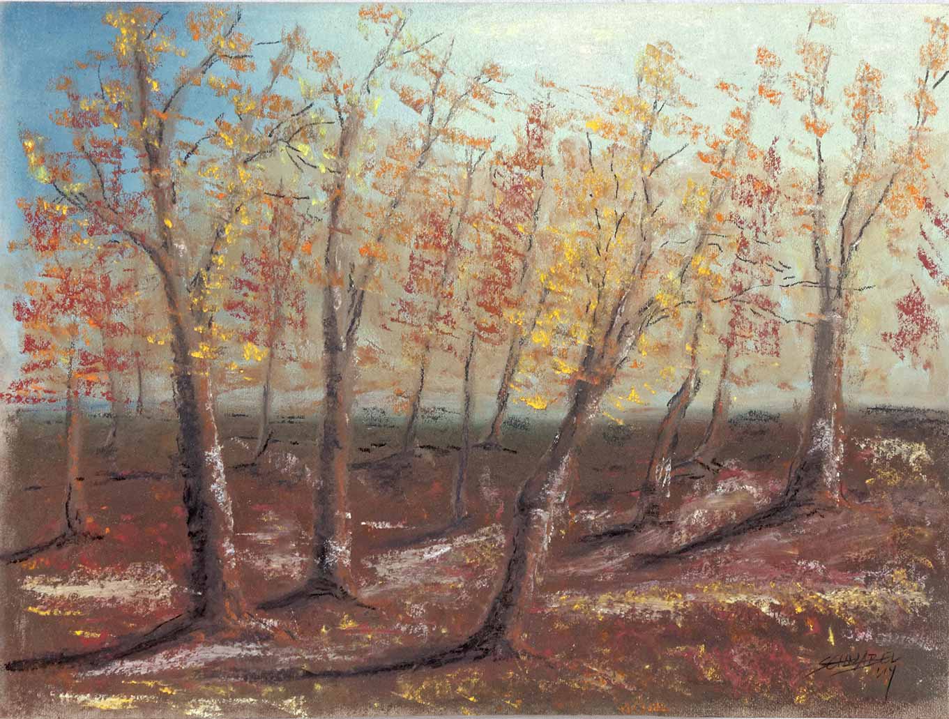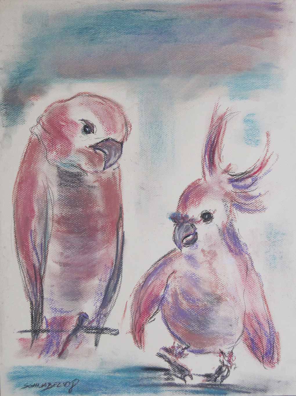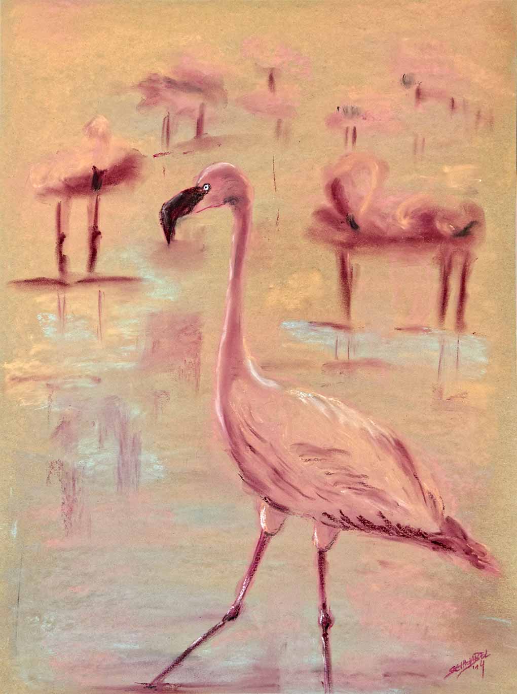 Eines der Hauptmedien von Susanne Schnabel sind die Pastellkreiden, wobei sie die haptische Komponente besonders anspricht; sie scheint die Farben mit den Fingern auf dem Papier quasi zu modellieren.