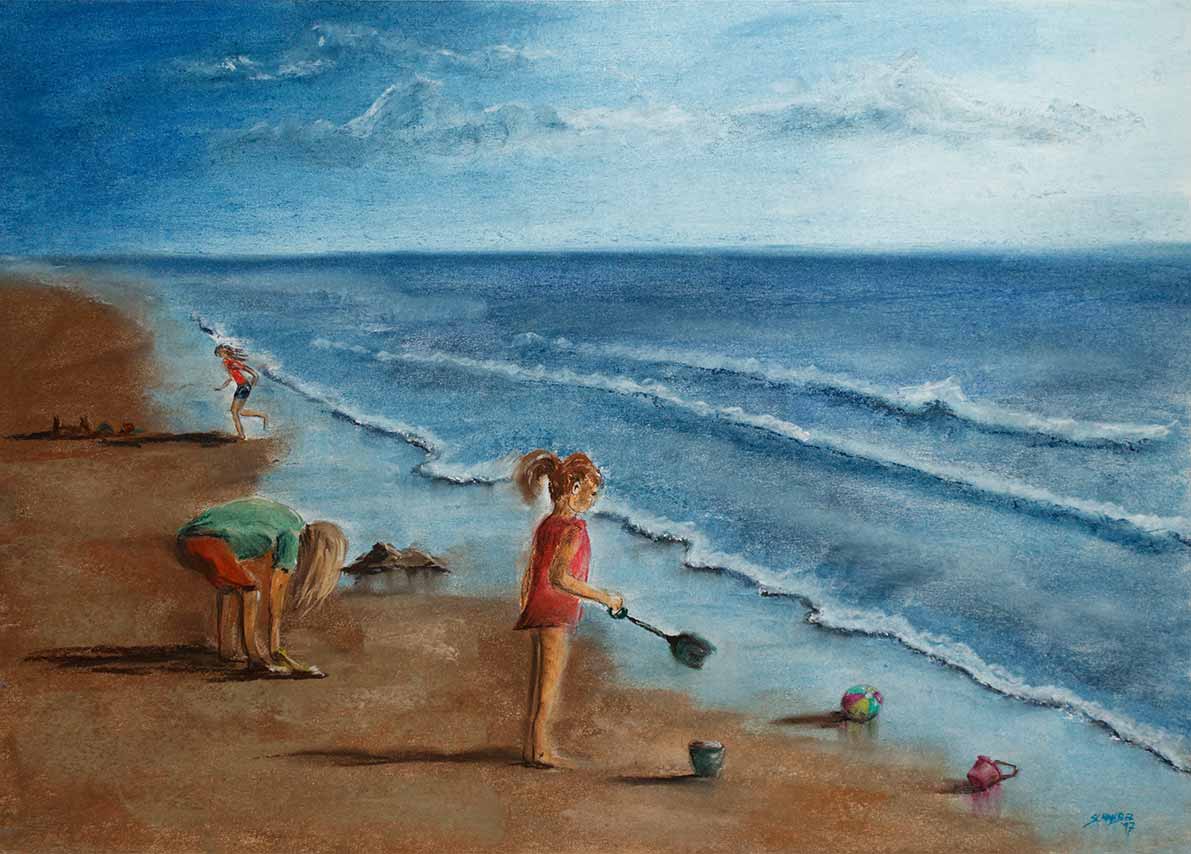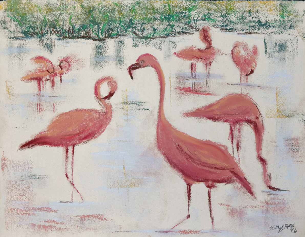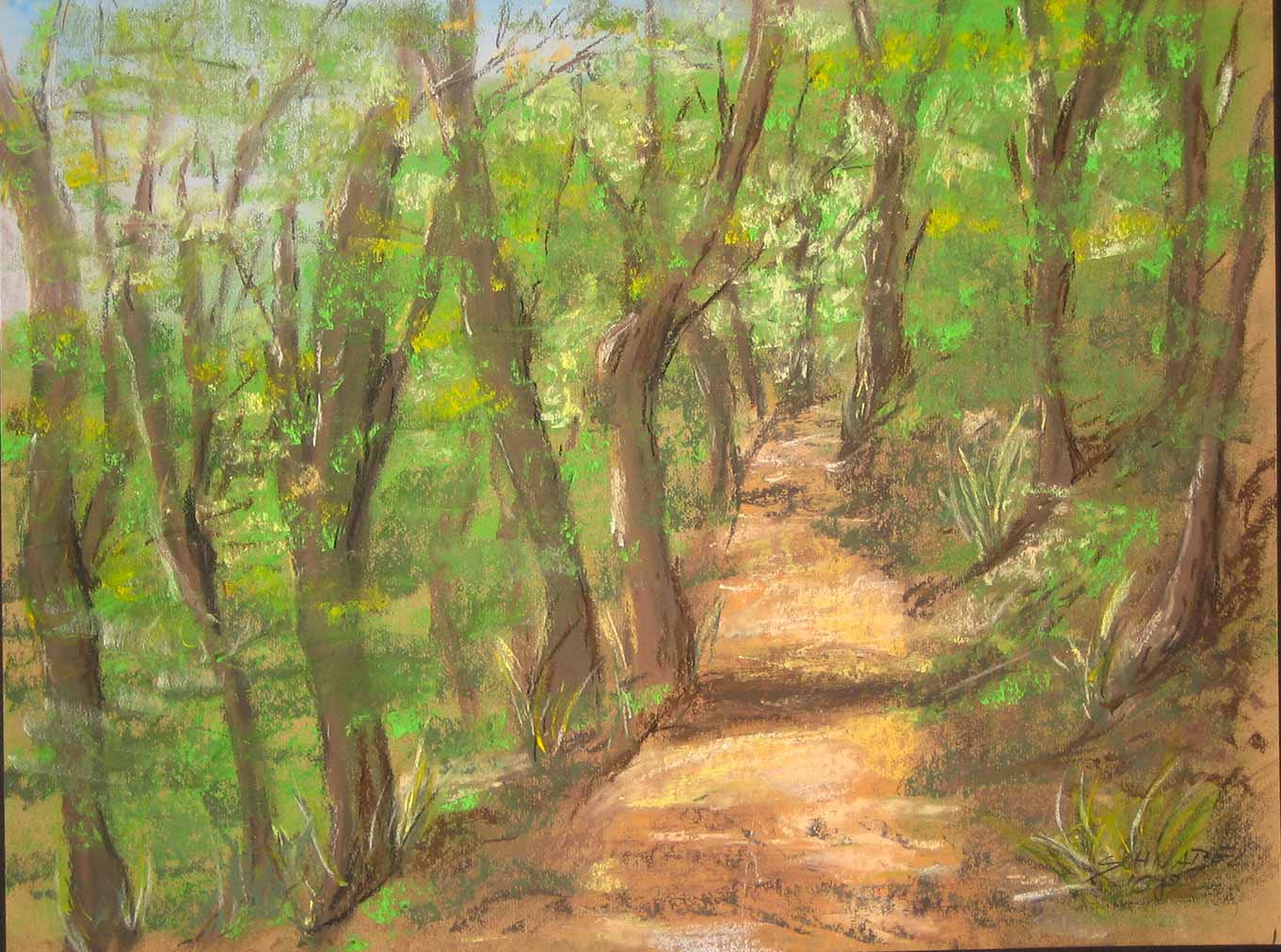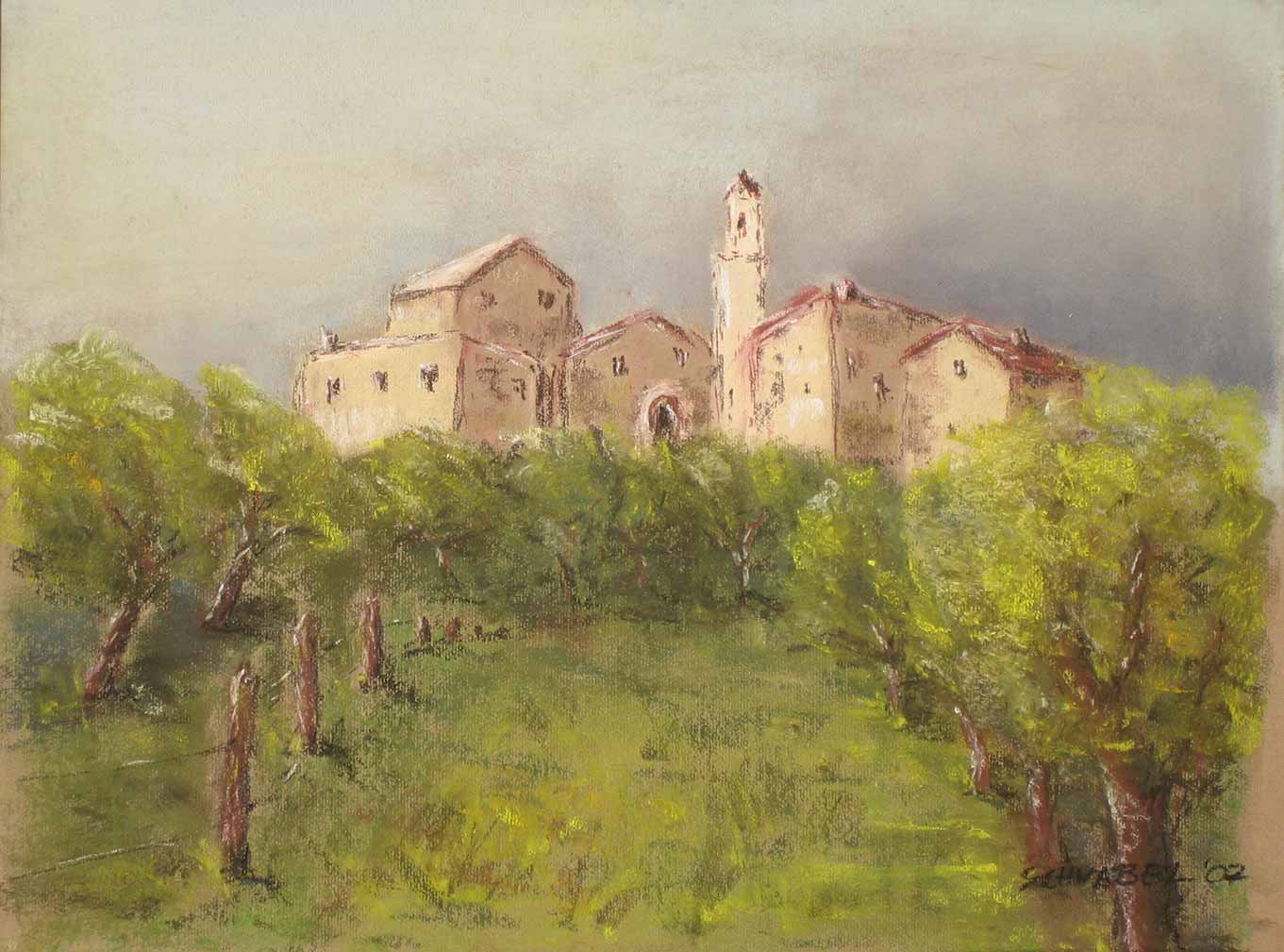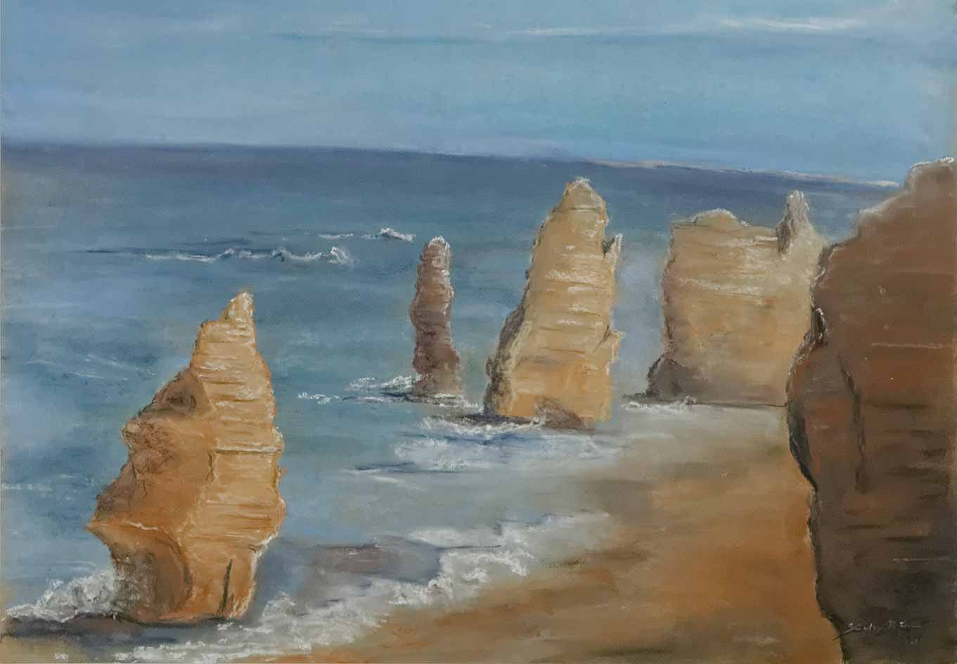 Eines der Hauptmedien von Susanne Schnabel sind die Pastellkreiden, wobei sie die haptische Komponente besonders anspricht; sie scheint die Farben mit den Fingern auf dem Papier quasi zu modellieren.