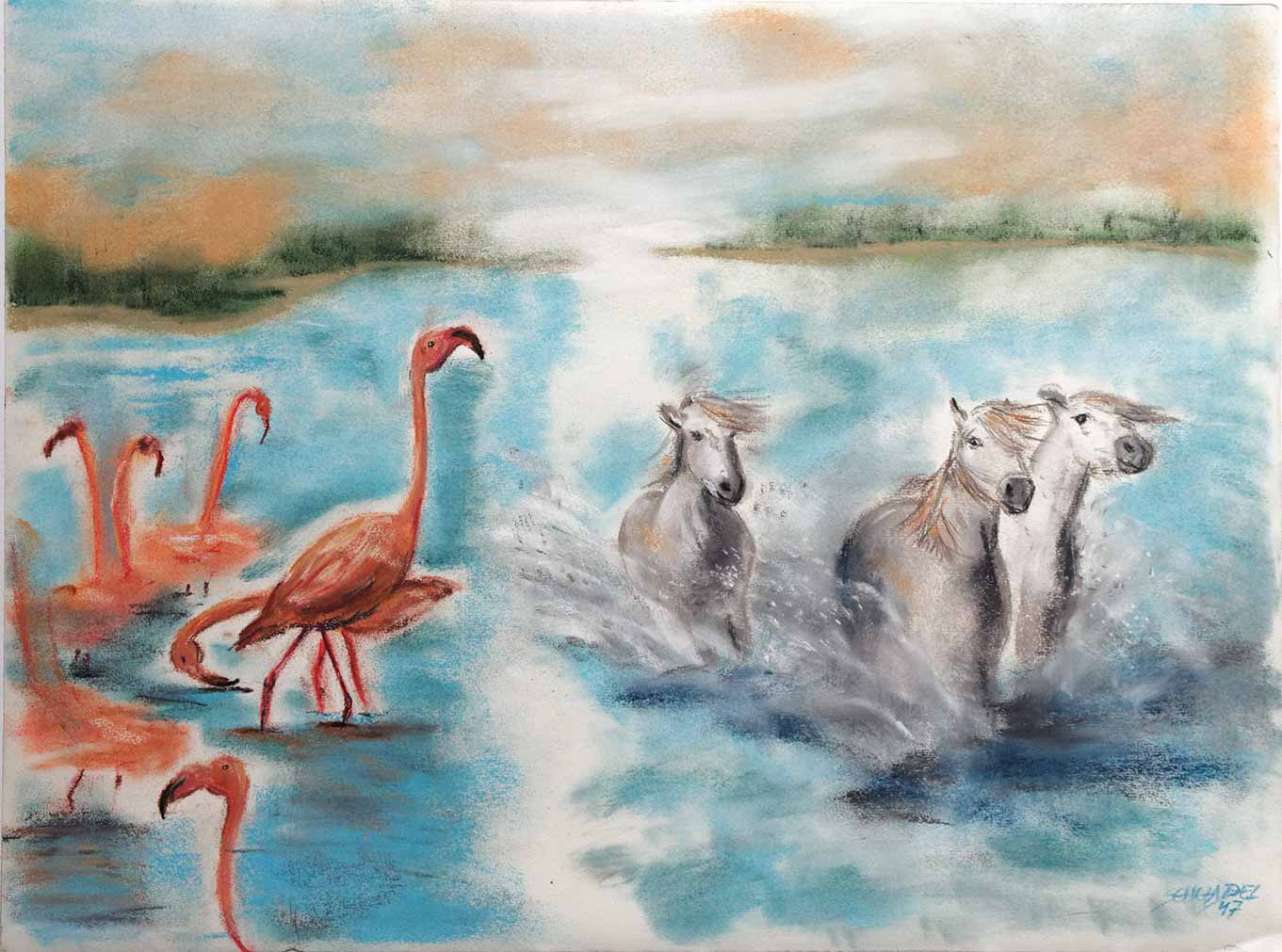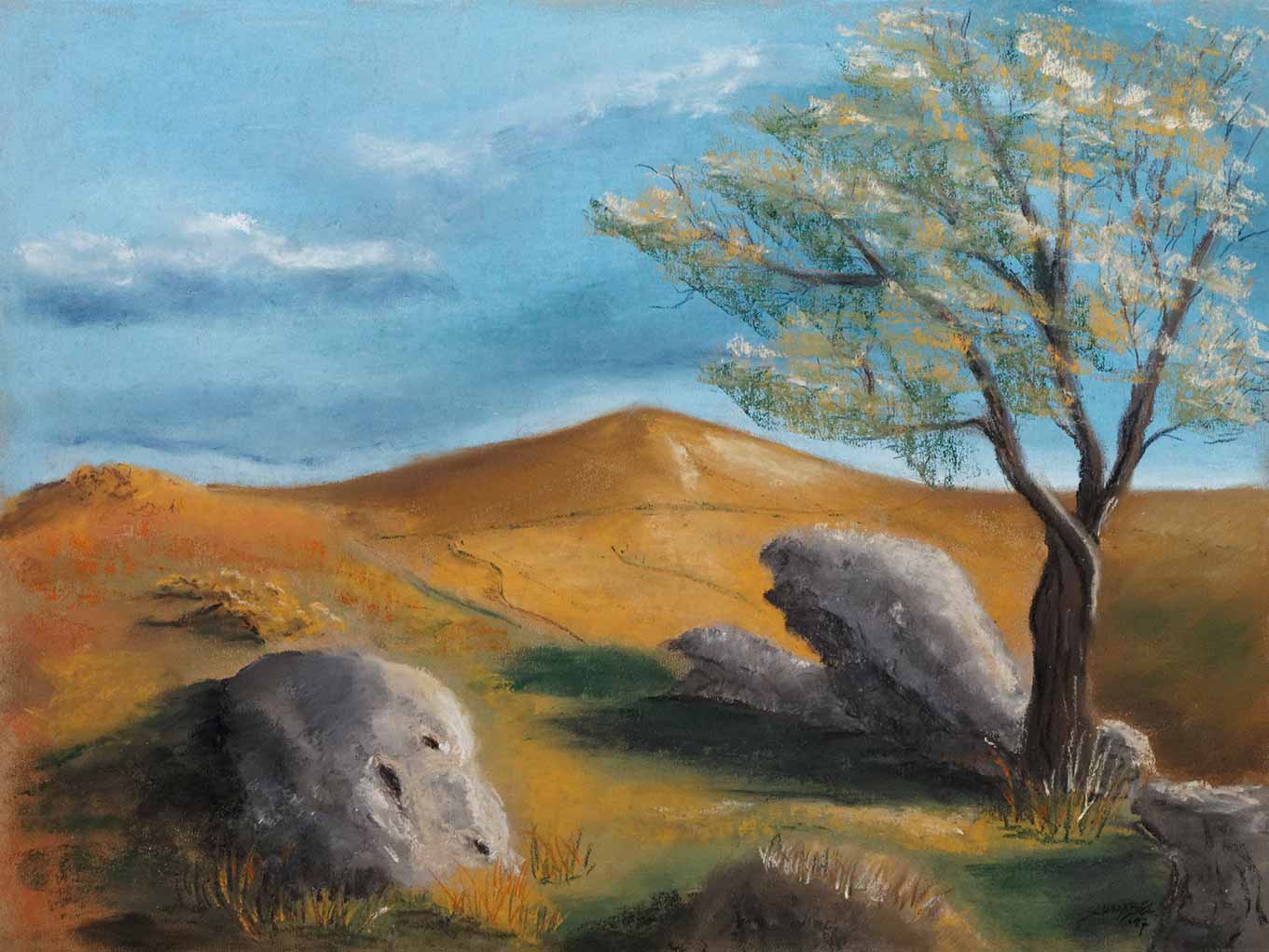 In ihren Pastellarbeiten verwischt sie die Grenze zwischen Zeichnung und Malerei.