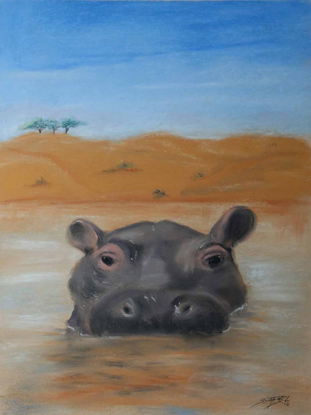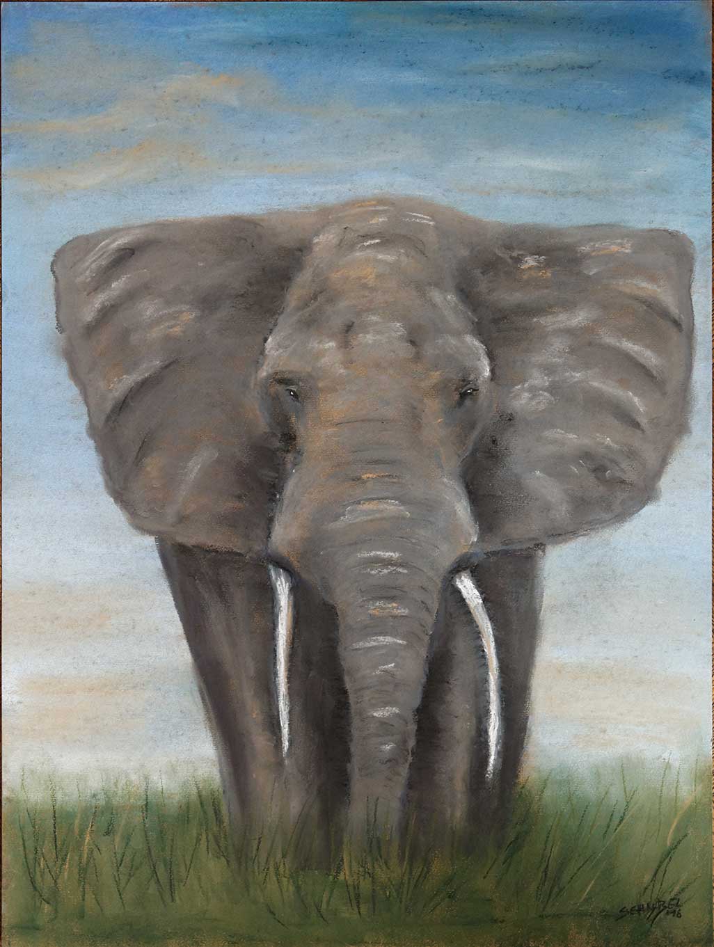 Bei ihren Tierportraits wählt Susanne Schnabel häufig eine Frontalperspektive mit ausdrucksvollem Minenspiel.
